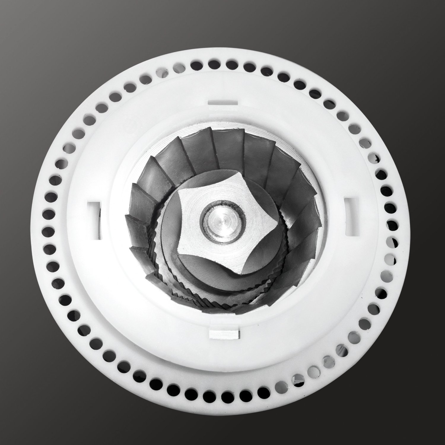 Das Metall-Kegelmahlwerk bietet drei verschiedene Einstellungen, mittels bis zu 15 bar Druck presst die Pumpe das erhitzte Wasser durch die variable Brühkammer (Kapazität 6 – 9g an