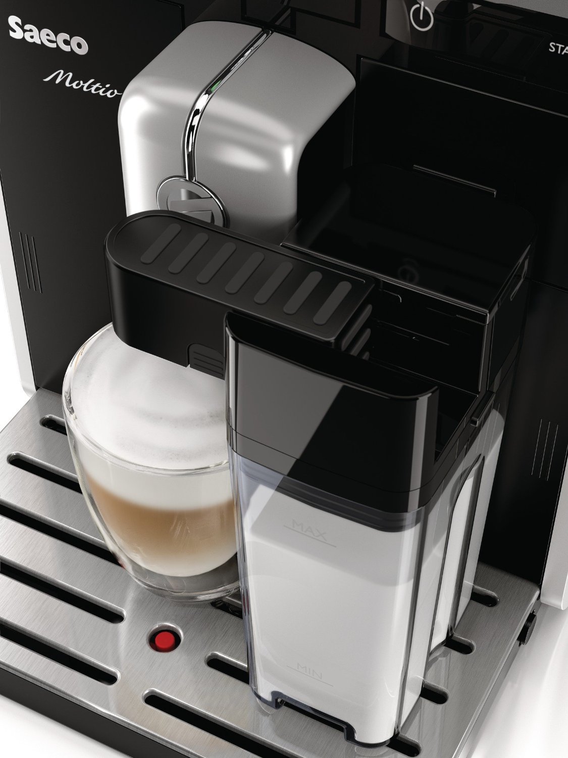 Der Saeco HD8769/01 Moltio Kaffeevollautomat erfreut Genießer des guten Geschmacks, weil der morgendliche Wachmacher – der Kaffee endlich wieder in einem neuen Aroma daher kommt. Vergessen Sie den altbekannten Filterkaffee, denn das integrierte Mahlwerk des Saeco Kaffeevollautomaten besticht mit einem köstlichen Aroma jeden Gaumen und nach diesem Geschmackserlebnis wollen Sie kein anderen Kaffee mehr genießen müssen.